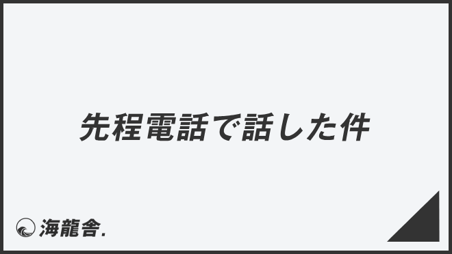 - 会議や打ち合わせの直前:電話で事前に確認した内容を会議の冒頭で言及する際に使用します。例えば、「先程電話で話した件について、皆様と共有したいと思います」と切り出すことで、参加者全員の注意を喚起し、議題の重要性を強調できます。